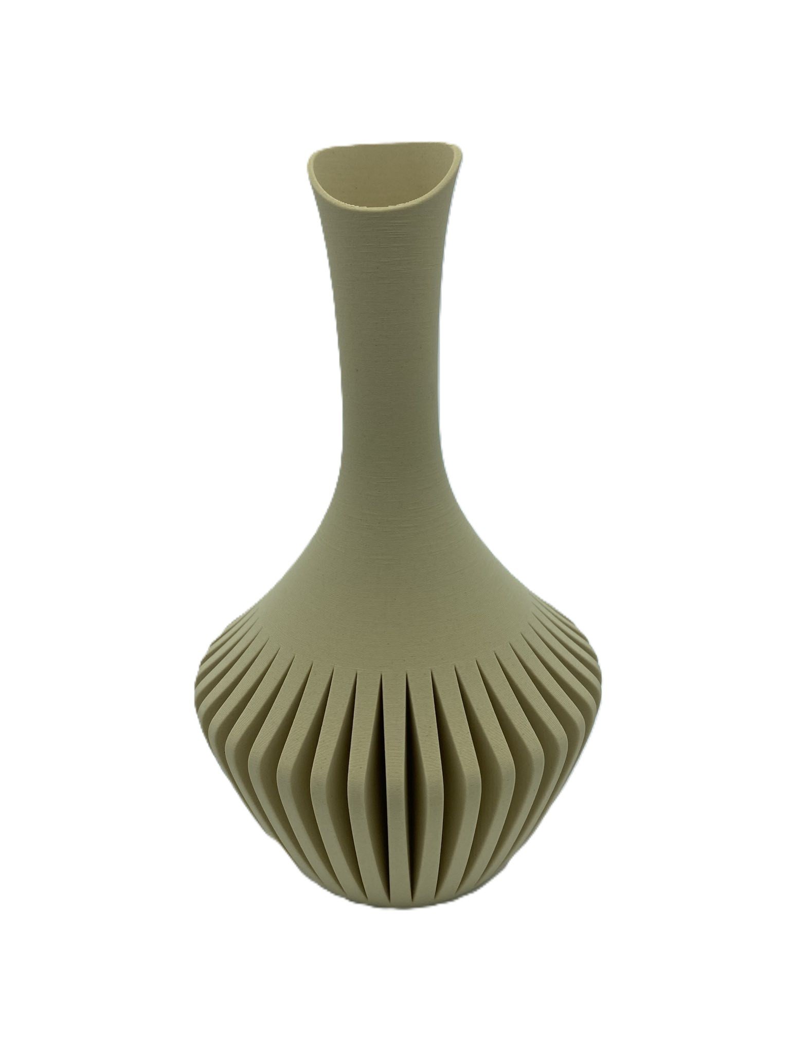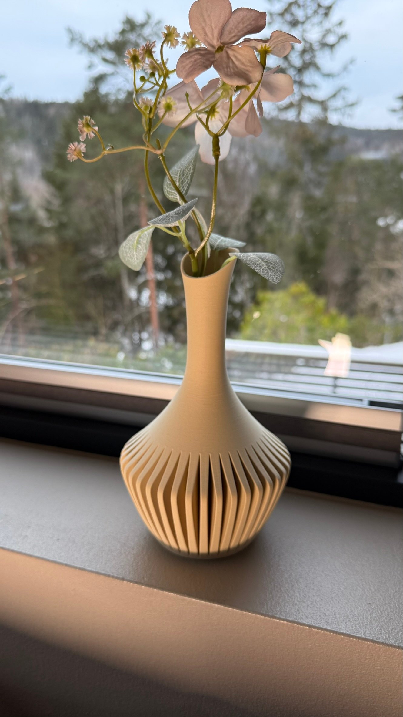 This vase is a 3D-printed design I created and is one of the first designs I sold. I wanted to give my mother a vase for her birthday that I had made myself. I also wanted to create something different from the similar vases I kept seeing on Instagram over and over again, so I tested several concepts before choosing this final design.